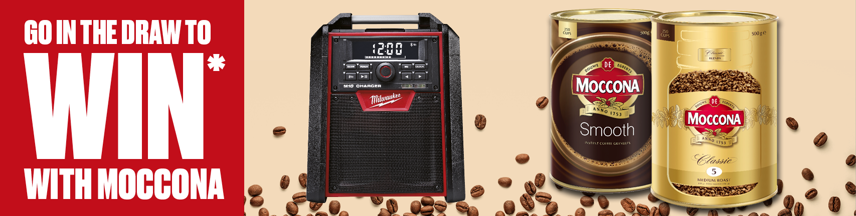 Purchase Moccona 500g or 1Kg Classic or Smooth Coffee and go in the draw to WIN 1 of 2 Milwaukee M18™ Jobsite Radio/Chargers. Coffee and tunes, the perfect jobsite companions.